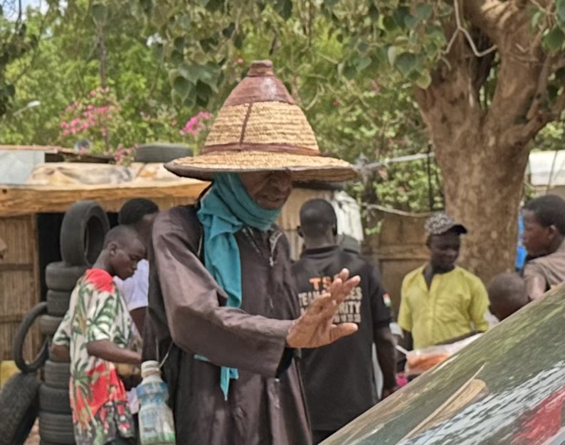 Auch die Fulani – oft Fulbe oder Peuhl genannt, tragen einen markanten Hut. Es handelt sich hier um einen Strohhut, der am oberen Ende und am Rand mit Leder verziert ist. Das hat in der Hitze vor allem praktische Gründe.