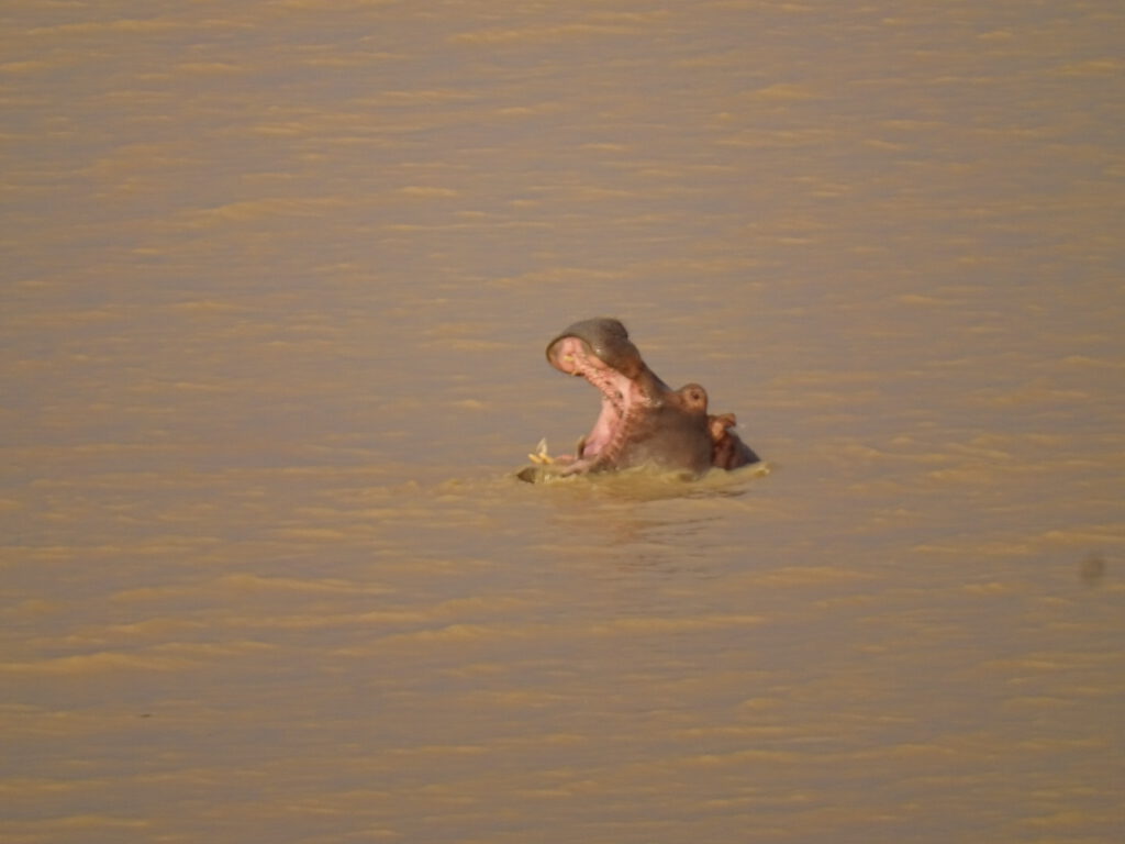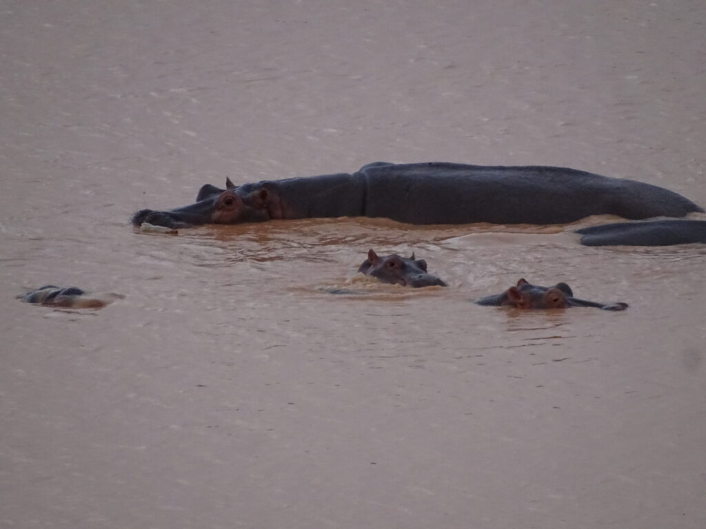 Eigentlich zählt der „Hippopotamus amphibius“ zu den größten Landtieren. Aber bei Temperaturen von permanent über 30 Grad sind die Flusspferde tagsüber lieber im Wasser. Eine Gruppe von bis zu 15 oder sogar 20 Tieren ist jedoch eine Seltenheit.