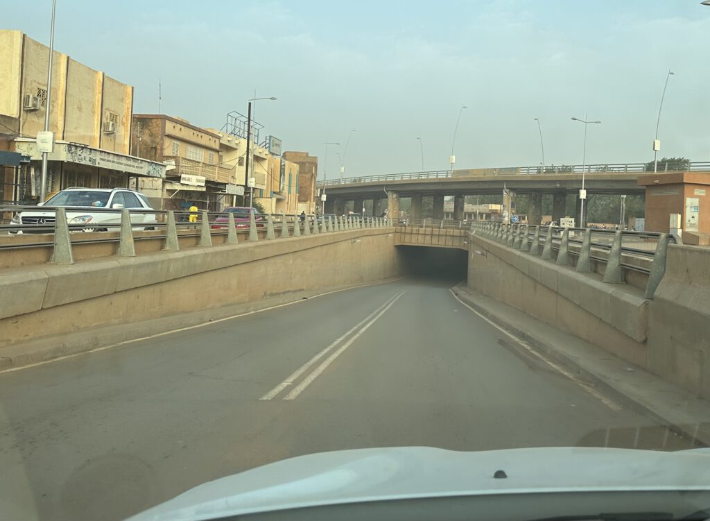 Asphaltierte Straßen sind in der Hauptstadt des Nigers die Ausnahme, nicht einmal 20 Prozent des Straßennetzes sind so ausgebaut. Die Regel sind die mit rotem Gestein aufgeschütteten Lateritstraßen, man sollte wohl eher sagen Sandpisten. Aber sie durchziehen jeden Winkel der Stadt.